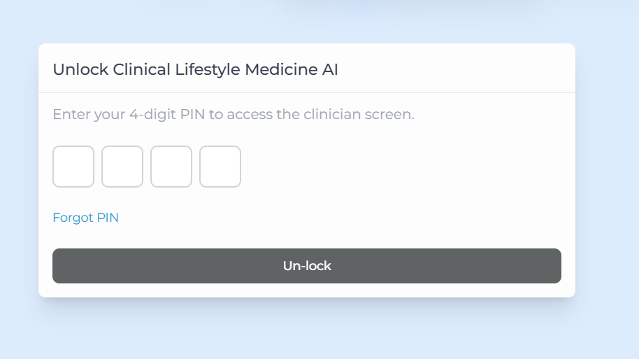 To protect patient data, CLM AI includes an additional security layer: Each clinician sets their own 4-digit PIN when using CLM AI for the first time.