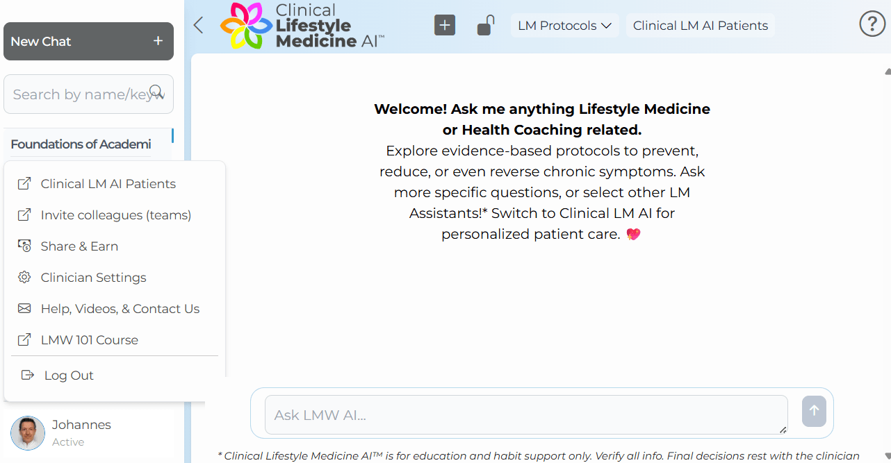This video will help you get started quickly using Clinical Lifestyle Medicine AI. Please allow yourself at least one month to go through the 101 Course and integrate all CLM AI features into your work with patients.